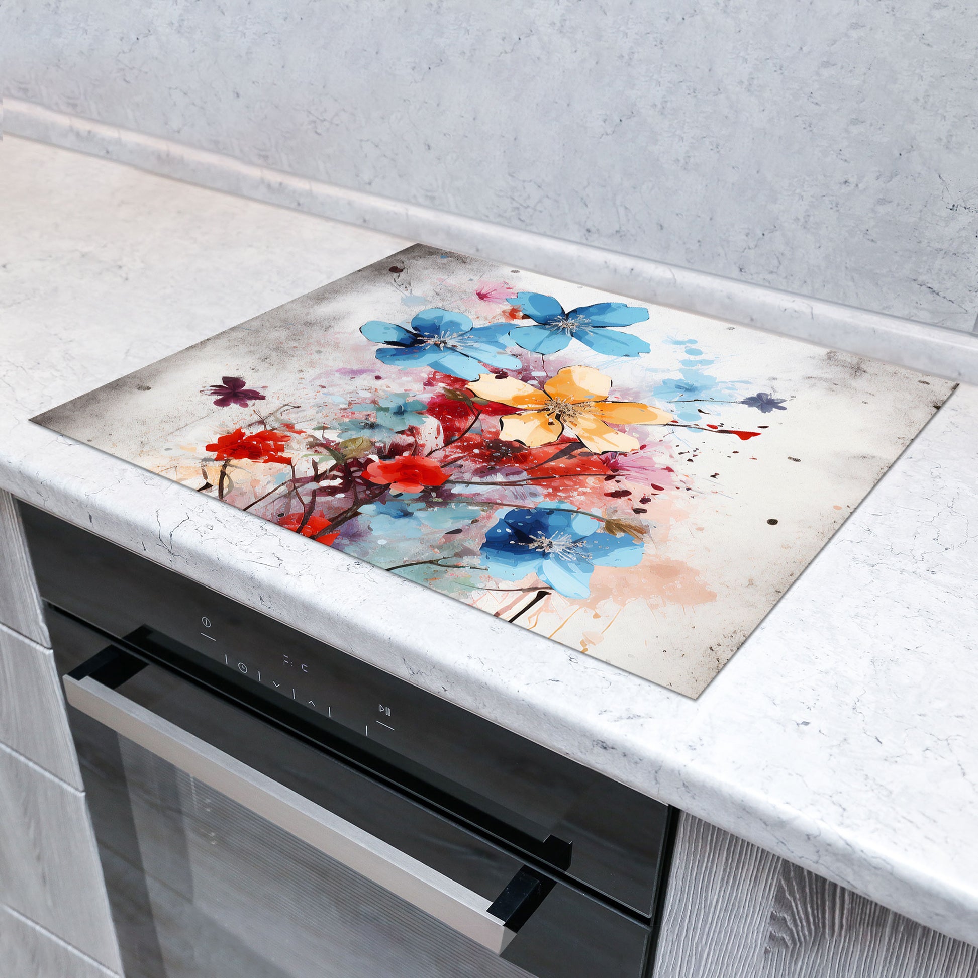 Bunte Blumen Herdabdeckplatte Vinyl Induktionsschutz Ceranfeld Kochfeld