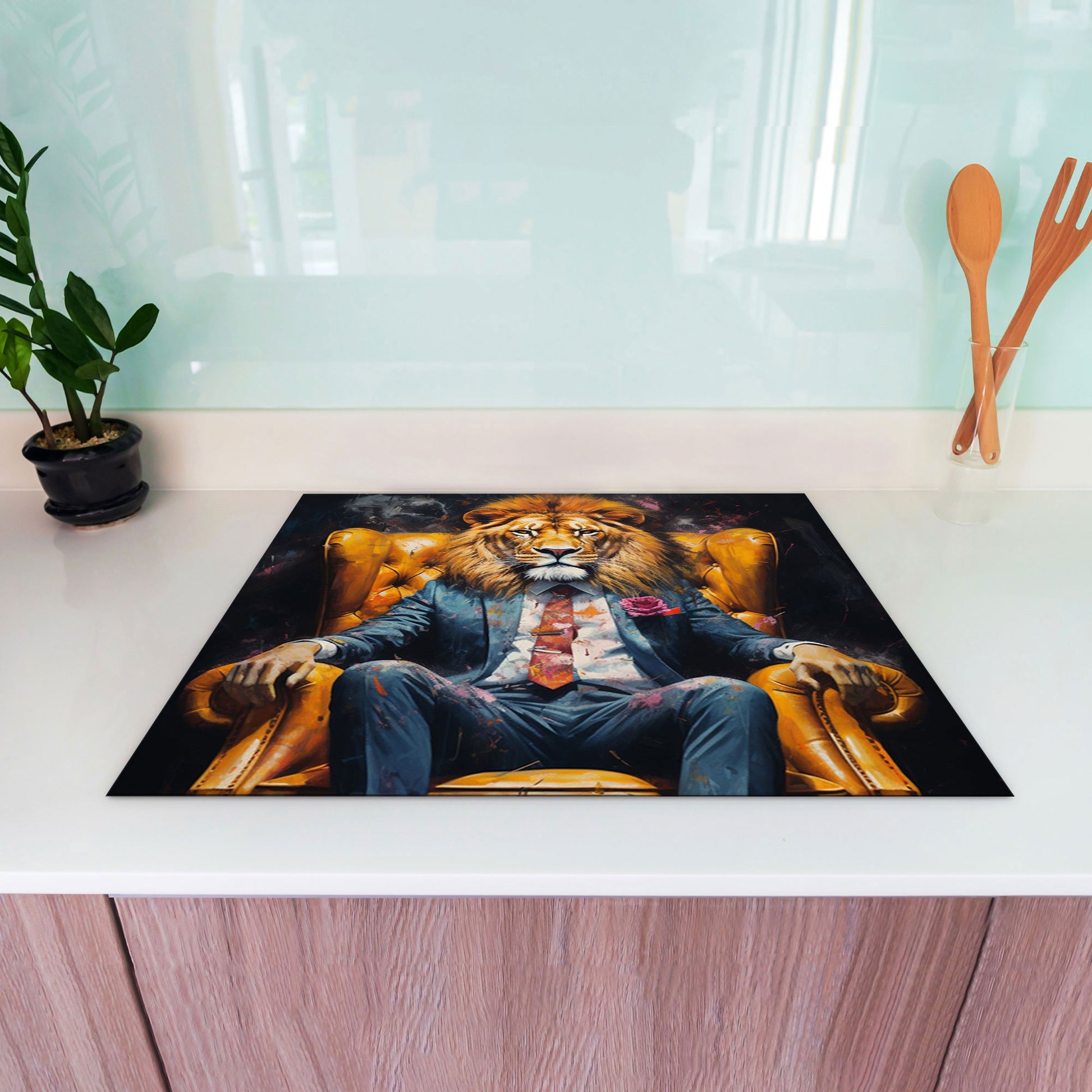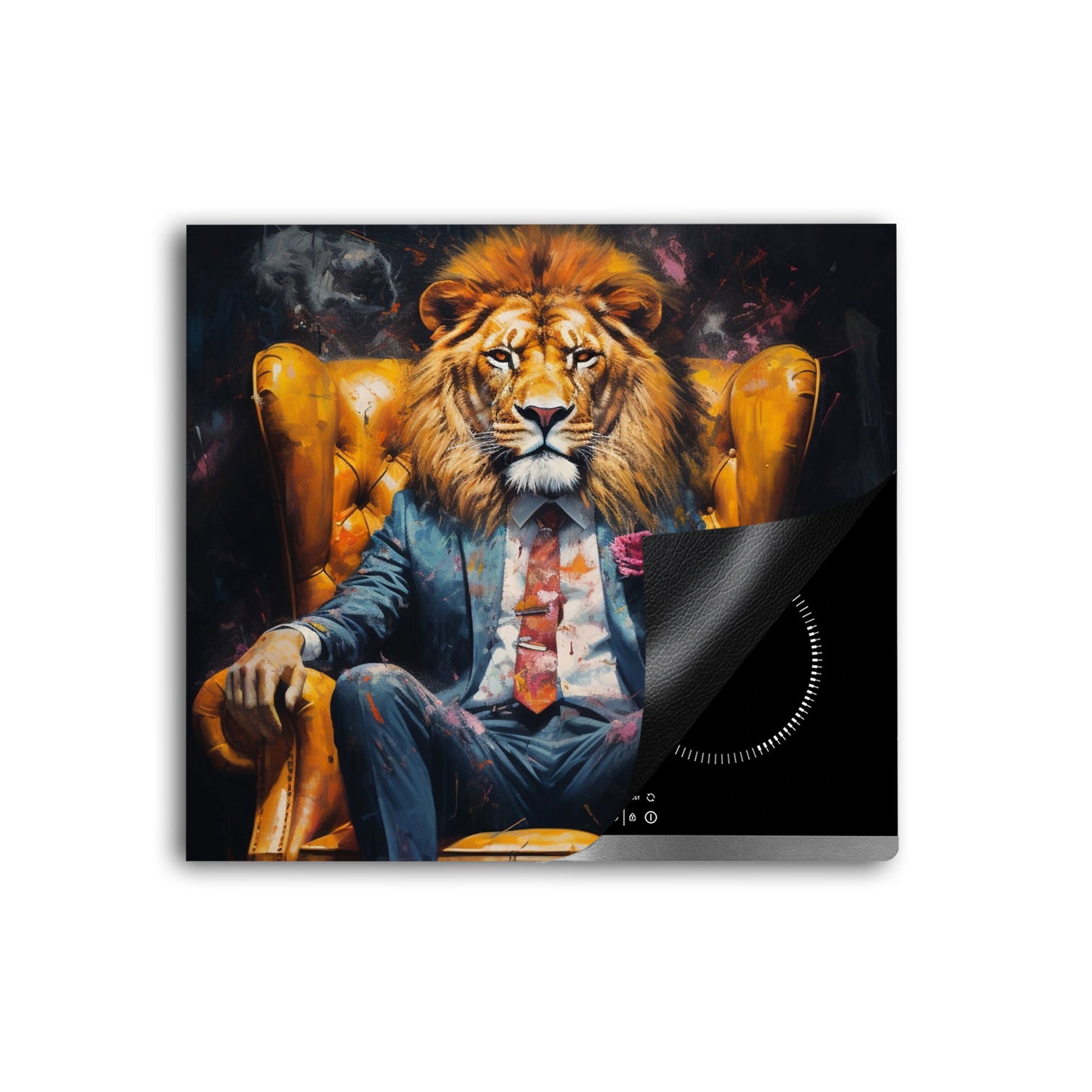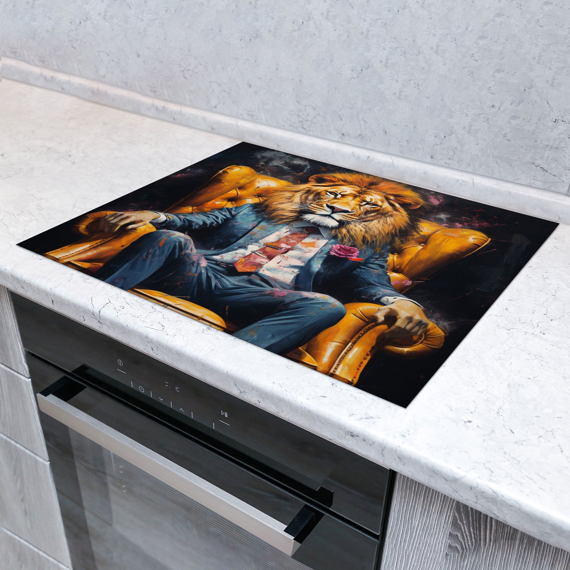 Löwe im Anzug Herdabdeckplatte Vinyl Induktionsschutz Ceranfeld Kochfeld