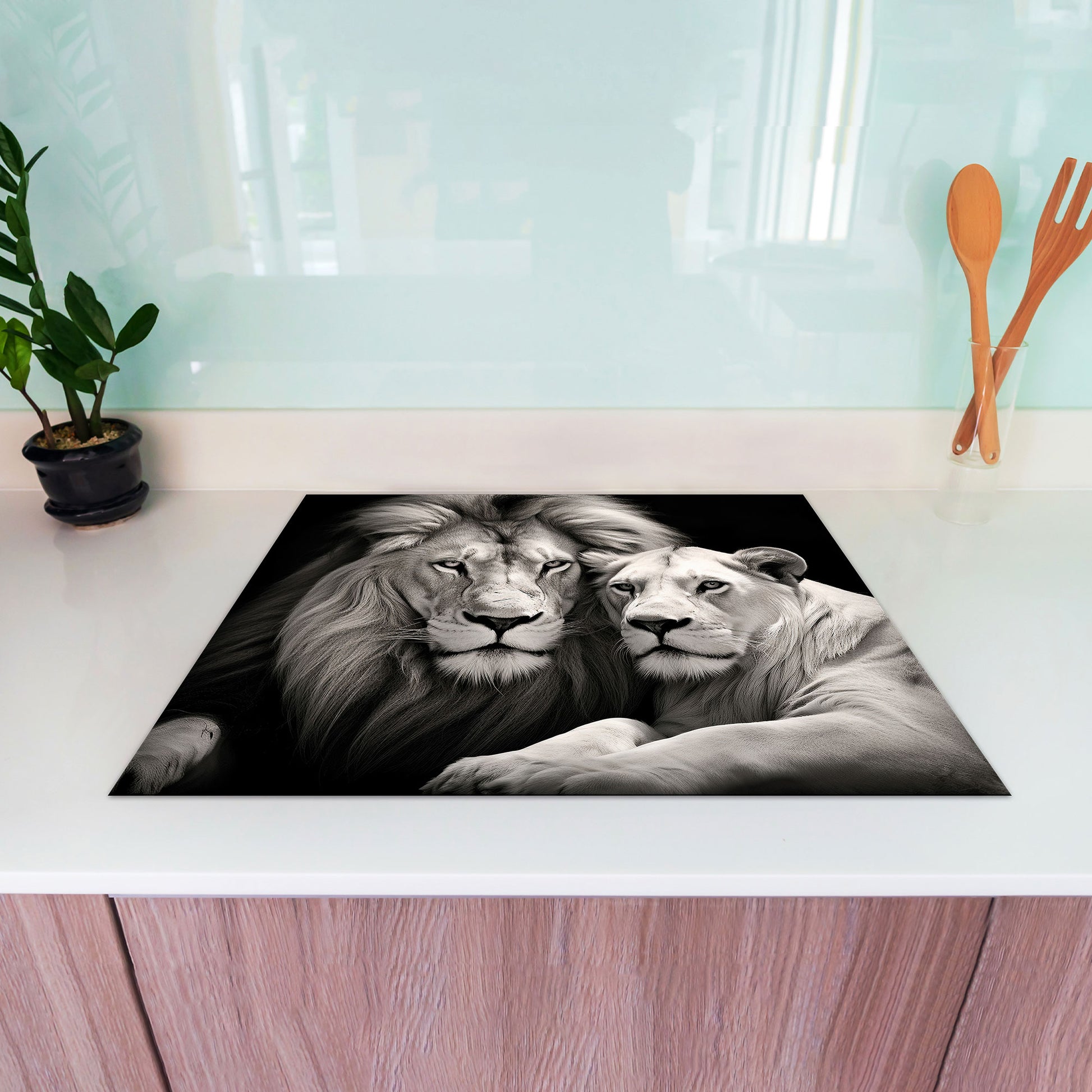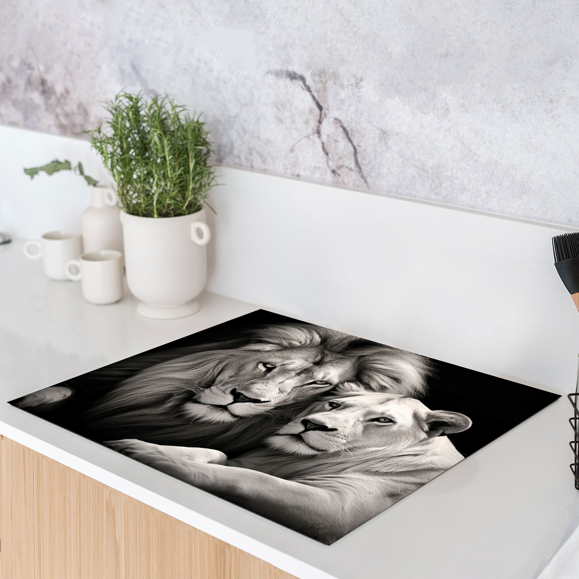 Löwenpaar Tiere Herdabdeckplatte Vinyl Induktionsschutz Ceranfeld Kochfeld