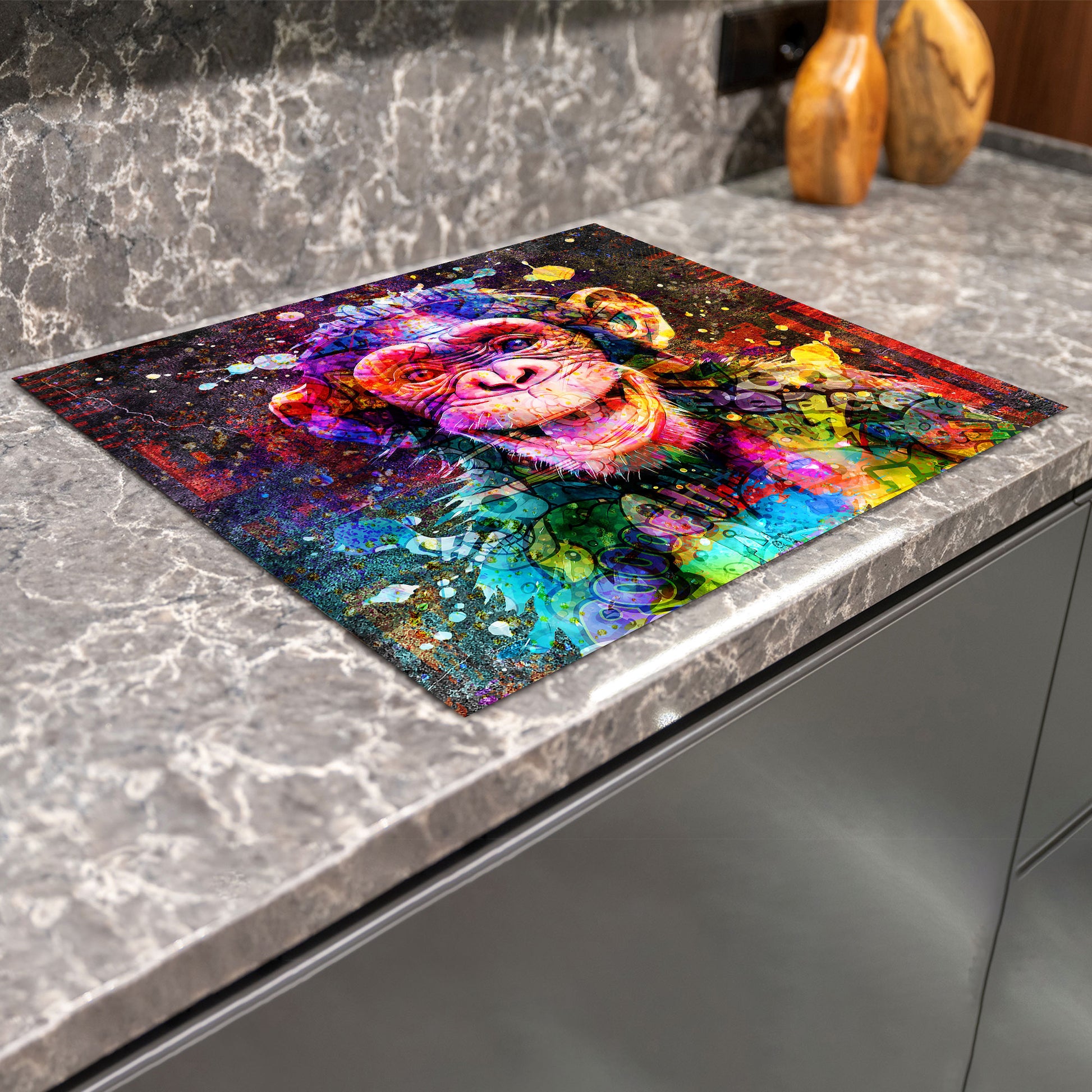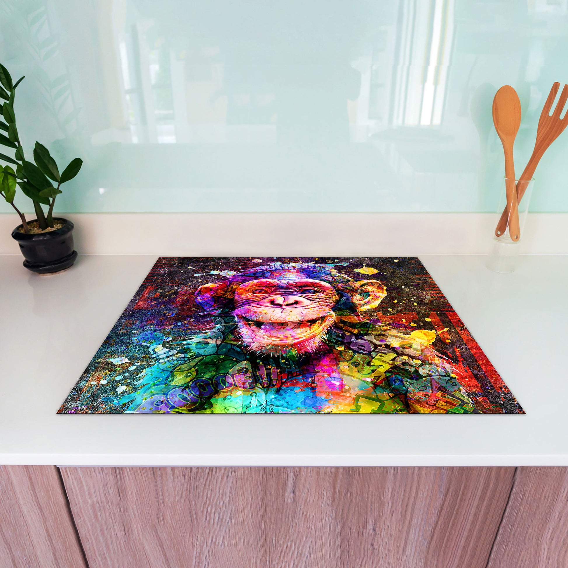Schimpanse Street Art Herdabdeckplatte Vinyl Induktionsschutz Ceranfeld Kochfeld