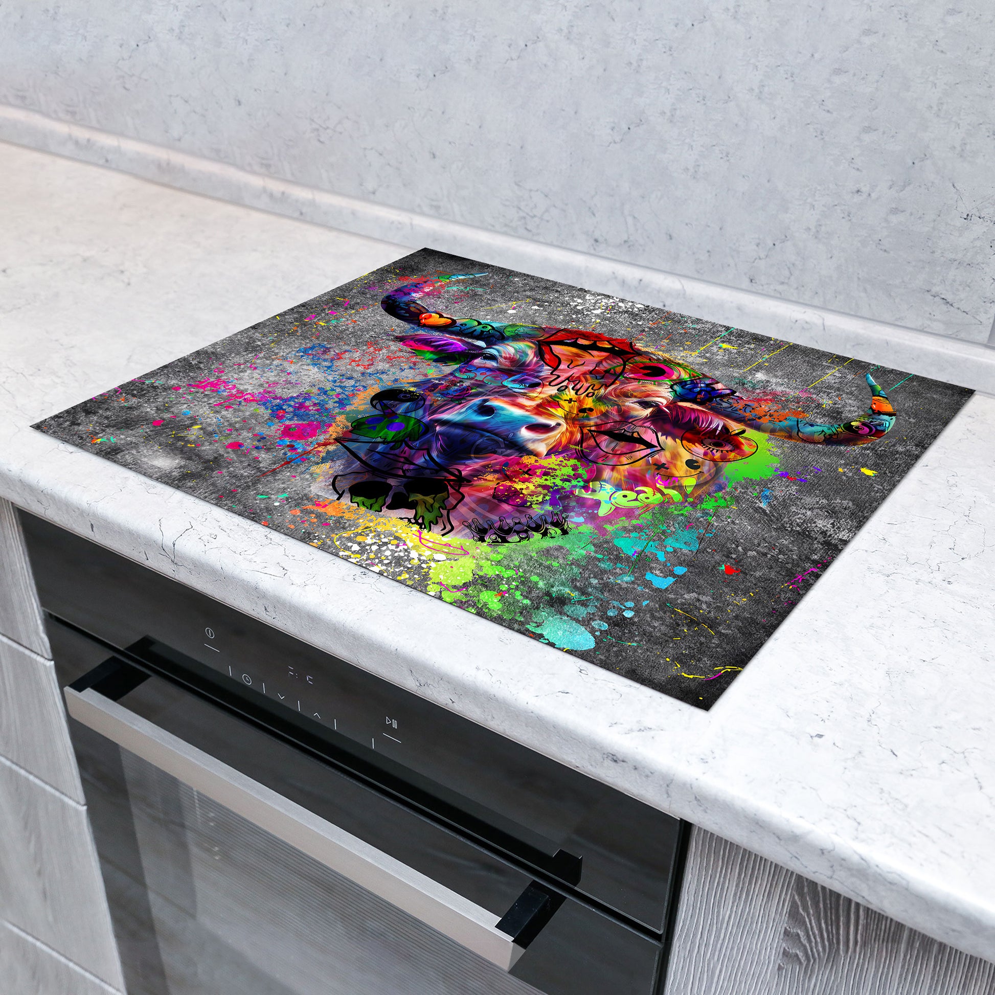 Street Art Stier Herdabdeckplatte Vinyl Induktionsschutz Ceranfeld Kochfeld